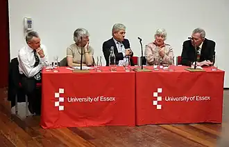 David Sanders, Baroness Williams of Crosby, John Bercow, Helen Wallace und Anthony King bei einer Podiumsdiskussion während der Einführungsvorlesung von D. Sanders (von links nach rechts).