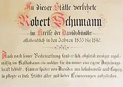 Schumann rechnete zudem bedeutende Komponisten der Vergangenheit zu den Davidsbündlern, so Ludwig van Beethoven und Franz Schubert. 1836 schrieb er in einem Brief an Heinrich Dorn: