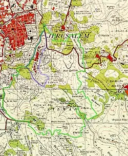 Daneben ist im späten 19. und frühen 20. Jhd. für kurze Zeit auch wieder jüdische Präsenz in der Gegend festzustellen: Das „Meyuhas-Haus“ zeugt noch heute davon, dass von den 1870ern bis 1930ern der Metzger Rahamim Nathan Meyuhas – Nachkomme einer alteingesessenen, schon im 16. Jahrhundert im Zuge der Vertreibung von Juden aus Spanien nach Jerusalem gezogenen Rabbinerfamilie – sein Schlacht- und Wohnhaus in das Tal südöstlich des Höhenkamms verlegt hatte.[55][56]
