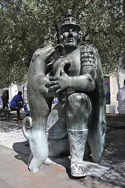 - Auf dem Platz der Kathedrale (Place de la Cathédrale) an der nördlichen Seite der Kirche steht im Schatten hundertjähriger Olivenbäume die Statue des römischen Legionärs mit seinem Hund. Der Überlieferung nach soll der stark rheumakranke Hund, der kaum noch laufen konnte, von seinem Herrchen am Ufer des Adour ausgesetzt und auf wundersame Weise durch den Schlamm des Flusses geheilt worden sein.