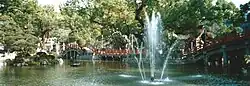 Der Schrein Temman-gu ist eine 905 errichtete Kultstätte für den 903 in der Verbannung hier verstorbenen Staatsmann Sugawara Michizane (Tenshin), der als Gottheit der Gelehrsamkeit besonders von Schülern und Studenten verehrt wird. Die Schreingebäude stammen aus dem Jahre 1591. Davor stehen eine Rinderstatue aus Bronze und ein Pflaumenbaum, der angeblich seinem Meister aus Kyoto hierher durch die Luft folgte.