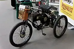 1895 gelangten die ersten Tricycles mit diesem Motor in den Verkauf.[10] Allerdings war der Motor mit dieser Leistung eher als Hilfe am Berg nützlich.[11] Mehrere Autoren nennen 1896 als Einführungsjahr.[12][13][14][15]