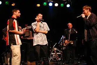 ![]() DeWieners & Band bei einem Konzert im Wiener Porgy & Bess (2003) | |