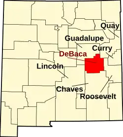 - ↑ De Baca County. In: Geographic Names Information System. United States Geological Survey, United States Department of the Interior, abgerufen am 5. September 2024 (englisch).