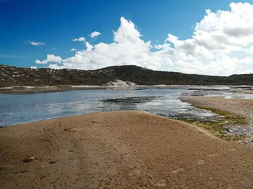Das De Mond Nature Reserve (deutsch Naturschutzgebiet De Mond ) liegt 26 Kilometer entfernt von Bredasdorp, Distrikt Overberg, Provinz Westkap in Südafrika am Indischen Ozean. Geschützt wird seit 1986 ein Feuchtgebiet an der Mündung des Heuningnes River zwischen den Orten Arniston und Struisbaai, die Größe beträgt ca. 918 Hektar.