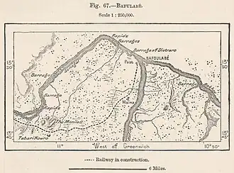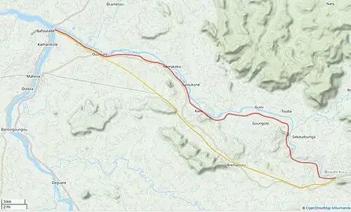 ![]() Decauville-Bahn Bafoulabé–Dioubéba nach Eric Fresné: 500-mm-Spur rot (1888–89), 600-mm-Spur orange (1890–97)[1] | |||||||||||||||||||||||||||||||||||||||||||||||||