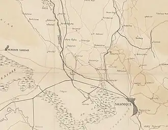 Das 30–35 km lange Streckennetz mit einer Spurweite von 600 mm verlief halbkreisförmig von Narès (heute Nea Filadelfia, Νέα Φιλαδέλφεια) über Bumardza (heute Bougaríevo, Μπουγαρίεβο), Sari-Omer (Σαρή Ομέρ), Inglis (heute Anchialos, Αγχίαλος) und Topçin (heute Gefyra, Γέφυρα) nach Vatiluk (heute Vathylakkos, Βαθύλακκος).[1]