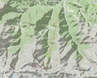 In Spanien verband schließlich ein etwa drei Kilometer langes Feldbahnnetzwerk die Bergstation der Luftseilbahn mit dem Zinkbergwerk Mine de Fourcaye der Société des Mines de Montolieu.[4]