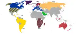 - NATO in Nordamerika und Europa (als Organisation seit 1954)[1] mit Nordatlantikvertrag (1949)[2]