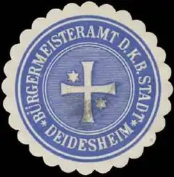 Nach dem Zusammenbruch der napoleonischen Herrschaft 1814 besetzten koalierte Truppen den linksrheinischen Teil Deutschlands. Zwischen 1814 und 1816 stand Deidesheim unter österreichischer und bayerischer Verwaltung, ab dem 30. April 1816 war Deidesheim – infolge der territorialen Neuordnung Europas auf dem Wiener Kongress – als Teil des Rheinkreises, der ab 1838 den Namen Kreis Pfalz trug, Teil des Königreichs Bayern. Im Jahr 1819 wurde Niederkirchen, das nach dem Wiener Kongress für kurze Zeit ein Ortsteil Deidesheims war, zur eigenständigen Gemeinde erhoben, wodurch Deidesheim beinahe ein Drittel seiner Einwohner verlor und von einer Stadt zu einer Gemeinde herabgestuft wurde. Erst 1838 hatte die Einwohnerzahl wieder einen Stand erreicht, der es zuließ, dass es am 20. März 1838 den verfassungsmäßigen Bestimmungen Bayerns gemäß wieder zur Stadt erhoben wurde.[37] Von 1818 bis 1862 gehörte Deidesheim dem Landkommissariat Neustadt an; aus diesem ging das Bezirksamt Neustadt hervor.