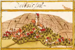 In der zweiten Hälfte des 16. Jahrhunderts wurde Deizisau Poststation an der ersten dauerhaft betriebenen Postlinie im Heiligen Römischen Reich, die damals von Venedig nach Antwerpen führte.[7] Der erste namentlich bekannte Postmeister war im Jahr 1585 Carlin von Taxis,[8] der der Postunternehmerfamilie Thurn und Taxis entstammte.[9] Manche seiner Nachkommen leben noch heute in Deizisau,[10] wo Taxis einer der häufigsten Familiennamen ist.[11]