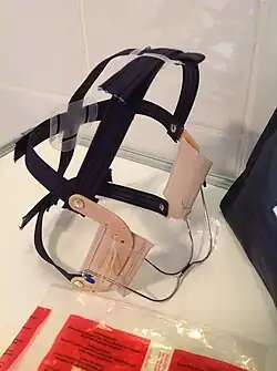 - Eine Variante der Delaire-Maske ist das Tübinger Modell, bei dem die Maske durch ein Gummiband am Hinterkopf gegen Verrutschen gesichert wird.[5]