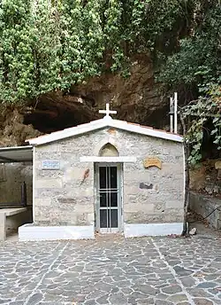 Auf etwa halbem Weg nach Meslavia wird die Felsenkapelle Agia Paraskevi mit einem großen Rastplatz daneben erreicht, für die meisten Wanderer ist die Kapelle der Umkehrpunkt.[2] Für den Hin- und Rückweg sind knapp zwei Stunden einzuplanen.