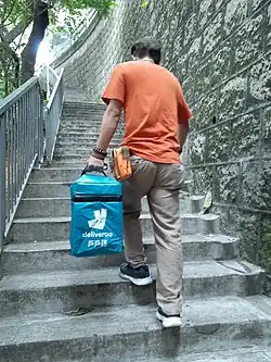 Deliveroo ist ein britischer Online-Lieferdienst, der seine Kunden mit Gerichten aus verschiedenen Partner-Restaurants beliefert. Gegründet wurde er 2013 von Will Shu und Greg Orlowski in London. Das Unternehmen operiert mittlerweile auch in den Niederlanden, Frankreich, Belgien, Irland, Spanien, Italien, Australien, Singapur, Dubai und Hongkong.[2] Das Unternehmen ist im Bereich der Gig Economy tätig, in dem es kleine Aufträge an Fahrer vergibt, die formal als Freiberufler oder geringfügig Beschäftigte tätig sind. Die Geschäftstätigkeit in Deutschland wurde Anfang August 2019 eingestellt.