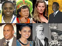 Der Großteil der brasilianischen Bevölkerung stammt von mehreren Hauptquellenpopulationen (entweder allein oder häufiger in unterschiedlichen Kombinationen in unterschiedlichem Ausmaß gemischt); frühe europäische Siedler (hauptsächlich ethnische Portugiesen), spätere Migranten aus Europa, dem Mittleren Osten und Asien, Nachkommen von Sklaven aus Afrika südlich der Sahara und indigene Völker in Brasilien (hauptsächlich Tupi und Guaraní, aber auch von anderen indigenen ethnischen Gruppen). Aufgrund der Durchmischung der Bevölkerung sind ethnische Kategorien weniger klar umrissen als in anderen Ländern und können auch stark subjektiv sein. Bei den Volkszählungen kann die Bevölkerung aus folgenden fünf ethnischen Kategorien zur Selbstidentifizierung wählen: Branco (Weiße), Pardo (Braune/Farbige), Preto (Schwarze), Amarelo (Gelbe/Asiaten) und Indígena (indigene). Ethnische Grenzen sind oft fließend, so dass viele Weiße in Brasilien nicht rein europäischer Abstammung sind und Schwarze meist nicht rein afrikanischer Abstammung. Laut der meisten Studien ist die Gesamtbevölkerung genetisch zu knapp zwei Dritteln europäischer Herkunft, wobei insgesamt weniger als zwei Drittel rein europäischer Abstammung sind. Laut einer genetischen Studie aus dem Jahre 2013 ist die Bevölkerung Brasiliens im Durchschnitt zu ca. 60 % europäischer Abstammung, zu ca. 25 % afrikanischer Abstammung und zu ca. 15 % indianischer Abstammung. Europäische Abstammungslinien sind am stärksten im Süden des Landes verbreitet mit 74 % und am wenigsten im Norden mit 51 %. Afrikanische Gene sind am stärksten im Nordosten verbreitet mit 28 % und am schwächsten im Süden mit 15 %. Indigene Abstammung ist am stärksten im dünn besiedelten Norden des Landes verbreitet mit 32 % und am schwächsten im Süden mit 11 %. Übergänge zwischen ethnischen Gruppen sind in Brasilien oft fließend, da die große Mehrheit der Bevölkerung von mehr als einer Bevölkerungsgruppe abstammt. So waren Brasilianer, die sich selbst als Weiße bezeichnen, zu 75 % europäischer Abstammung, während Brasilianer, die sich selbst als Schwarze bezeichnen, zu 58 % afrikanischer Abstammung waren.[23] Die meisten anderen Studien kommen zu vergleichbaren Ergebnissen.[24] Alle Studien zeigen zudem, dass die väterliche Abstammungslinie stärker europäisch geprägt ist als die mütterliche.[16]