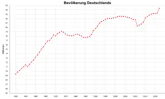 - ↑ Bevölkerung – Einwohnerzahl von Deutschland von 1990 bis 2024 (in Millionen). Statista, abgerufen am 28. April 2025.