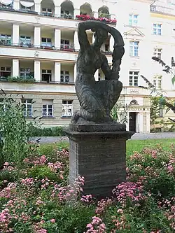 Das sozialpolitische Denkmal erinnert an die Wohnungsnot nach dem Ersten Weltkrieg und die Anstrengungen der Stadt zur Behebung derselben. Das Denkmal wurde vom Bildhauer Georges Morin aus Muschelkalkstein gefertigt. Die Skulptur zeigt die altrömische Göttin der Blüten kniend auf einem viereckigen Sockel; dabei hält sie ein Füllhorn hoch und entleert dieses. Inschrift (Vorderseite) (2009: völlig verwittert, nicht lesbar): Nach dem großen / Kriege wurde diese / Baugruppe durch / die Stadt Spandau / zur Linderung der / Wohnungsnot im / Jahr 1919 errichtet. Der Volksmund soll dieser Skulptur in den 1920er Jahren den Namen „Rosa Luxemburg“ gegeben haben. |