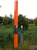![]() Dieser Obelisk ist vermutlich um 1887 (Ausscheiden der Stadt Spandau aus dem Landkreis Osthavelland) als Landkreisgrenzstein an seiner heutigen Stelle aufgestellt worden; als Aufschrift trägt der die Worte „Landkreis Osthavelland“. Es handelt sich um einen umgearbeiteten ehemaligen Posthalbmeilenstein aus Sandstein. Der mit Sockel rund 1,5 Tonnen schwere Stein, der sich seit einem Gebietsaustausch mit der DDR (1988) im Bezirk Spandau befindet, war im Jahr 2010 in einem desolaten Zustand. Aufgrund der starken Verwitterung, besonders auf der Rückseite des Denkmals, wurde eine Restaurierung und Konservierung des Steines dringend notwendig; im November 2010 hat das Oberstufenzentrum Bautechnik I in Berlin-Spandau im Rahmen eines Ausbildungsprojekts (Steinmetzausbildung) mit der Restaurierung des Steins begonnen. |