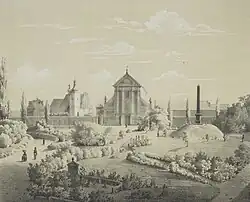 Der Obelisk hat eine Höhe von 13 Metern und befindet sich auf einem aus Ziegelsteinen gemauerten Sockel, welcher mit Granitplatten verkleidet ist.