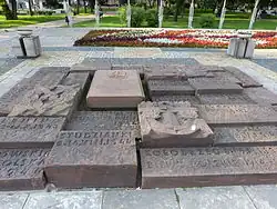 Geschaffen wurde die Grabplatte nach Plänen von Jerzy Jamuszkiewicz. Ursprünglich befand sich darunter ein Sarg mit den Überresten eines unbekannten Soldaten von Lwiw. Nach dem Zweiten Weltkrieg wurde der Sarg auf Anweisung der kommunistischen Behörden entfernt, die eine zentrale Gedenkstätte des unbekannten Soldaten in Warschau planten. Im Gedenken an den Soldaten wurde eine rosafarbene Sandsteinplatte mit der Inschrift: NIEZNANY ŻOŁNIERZ POLEGŁ W WALCE O WYZWOLENIE NARODOWE I SPOŁECZNE (Ein unbekannter Soldat, gefallen in der Schlacht für nationale und soziale Befreiung) errichtet. Um das Denkmal sind weitere Platten auf dem Erdreich verschiedener Schlachtfelder verlegt. Die Platten sind mit den Namen und Daten der Schlachten beschriftet.