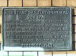 - ↑ Hamburg, Behörde für Kultur und Medien: Denkmalliste gesamt. (PDF) 3. Januar 2023, S. 443, abgerufen am 3. Februar 2023 (Denkmalliste ID 14157, Gedenkzeichen,Tafel zur Erinnerung an die Überschwemmungskatastrophe 1774).