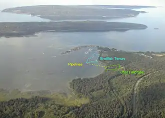 - ↑ Andrew Scott: The Encyclopedia of Raincoast Place Names: A Complete Reference to Coastal British Columbia. Harbour Publishing, Madeira Park (BC) 2009, ISBN 978-1-55017-484-7, S. 156–157
