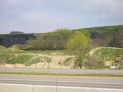 Prominentes Deponiegut stellt auch der Schutt der 1976 eingestürzten Reichsbrücke dar, der hier abgelagert, vergessen und 2007 wiederentdeckt wurde.[8] Einen der Granitblöcke, die die Pfeiler ummantelten, verarbeiteten Mitarbeiter der MA 48 – Abfallwirtschaft, Straßenreinigung und Fuhrpark- zu „Glückssteinen“, die sie zu karitativen Zwecken am Wiener Christkindlmarkt verkauften.[9]