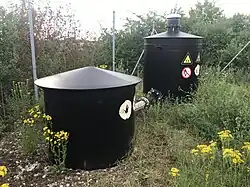 - Methanoxidation über Biofilter, Biofenster etc.: Gefahrenabwehr, Ex-Gefahr-Schwachgas < 25 Vol.-% Methan, < 25 m³/h; kostengünstige Investition und Betriebskosten, Wirkung umstritten.