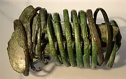 Das Depot besteht aus sieben Bronzegegenständen. In einer Armspirale steckten drei vollständige Randleistenbeile, ein unvollständiges Randleistenbeil ohne Klinge, ein kleiner offener Ring und Bruchstücke einer weiteren Armspirale.