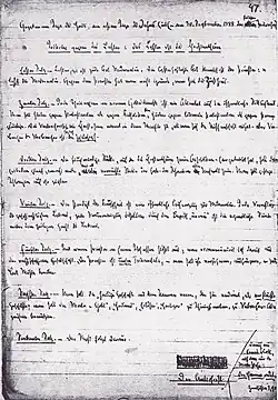 Im Nachlass Nietzsches gibt es eine auf den 30. September 1888 („der falschen Zeitrechnung“) datierte und mit „Der Antichrist“ unterschriebene Seite, die den „Todkrieg gegen das Laster: […] das Christentum“ erklärt. Hierin werden in sieben Sätzen, teilweise mit zweideutigen Begriffen, Maßregeln gegen das Christentum und dessen „Widernatur“ (etwa die Predigt der Keuschheit) erlassen: Priester seien aus der Gesellschaft zu isolieren, man solle sie „verfehmen, aushungern, in jede Art Wüste treiben“. Jede Teilnahme an einem Gottesdienst sei „ein Attentat auf die öffentliche Sittlichkeit“. Man solle härter gegen Protestanten als gegen Katholiken, härter gegen liberale als gegen strenggläubige Protestanten sein; da „das Verbrecherische im Christ-sein“ in dem Maße zunehme, als man sich der Wissenschaft nähert, sei „der Verbrecher der Verbrecher […] folglich der Philosoph“. Die Worte „Gott“ „Heiland“, „Erlöser“ und „Heiliger“ solle man als Schimpfworte benutzen. Dass der Text von Nietzsche zumindest zeitweise unter dem Titel Gesetz wider das Christenthum nach dem 62. Abschnitt im Antichrist vorgesehen war, steht außer Frage. Nietzsches endgültige Absichten lassen sich aber nicht mehr klären.