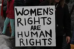Plakat bei einem Frauenmarsch in Montana (2018) – Die Idee des Slogans stammt von Hedwig DohmPlakat von Marianne Saxl-Deutsch, Wien, 1912Hedwig Dohm, 1898