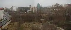 Nach der Wende stand zunächst der Neubau einer Kunsthalle an der Herzogin Garten zur Debatte. Nach Plänen von Frank Stella sollten kugel- beziehungsweise napfkuchenförmige Bauwerke errichtet werden. In Anbetracht der Tatsache, dass dieses Vorhaben in direkter Nachbarschaft zum Zwinger vielen Bürgern und Politikern als zu futuristisch und respektlos erschien, ging es in einer jahrelangen Diskussion unter. Der Investor Rolf Hoffmann wandte sich in Richtung Berlin ab.[20][21][22][23] Somit blieb das Gelände für mehr als ein weiteres Jahrzehnt unverändert. In der Zwischenzeit wurden im Rahmen studentischer Belegarbeiten auch Pläne für ein Architektur- beziehungsweise Museumszentrum erarbeitet.[24]
