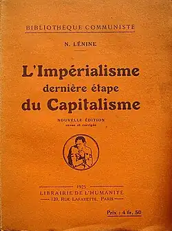 - ↑ Lenin: Vorwort zur französischen und deutschen Ausgabe. 6. Juli 1920 (unter Imperialismus und Kapitalismus zuerst in Nr. 18 der Zeitschrift Die Kommunistische Internationale veröffentlicht, im Okt. 1921 erschienen). In: W. I. Lenin: Der Imperialismus als höchstes Stadium des Kapitalismus. Gemeinverständlicher Abriß. 6. Auflage, Dietz Verlag, Berlin 1962, S. 7.