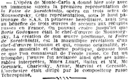 - ↑ Rezension der Aufführung in der Opéra de Monte-Carlo. In: Le Journal vom 18. März 1923. Digitalisat bei Gallica.