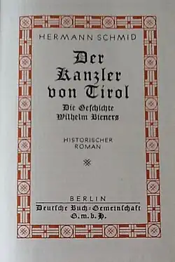 - Hermann Schmid: Der Kanzler von Tirol. Deutsche Buch-Gemeinschaft, Berlin 1929.