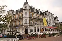 Karin bringt die verstörte Simone Braydon-Eggebrecht in einem Hotel unter (Drehort: Ahlbecker Hof)