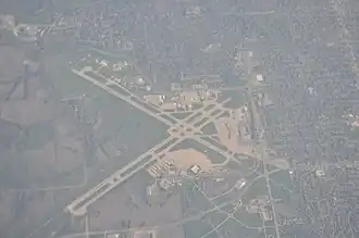 Bei Eröffnung verfügte der Flughafen über eine Fläche von 160 Acre (etwa 65 Hektar) und zwei asphaltierte Start- und Landebahnen mit einer Länge von je 1.800 ft (549 m).[5] Ende der 1930er Jahre konnten bereits vier Bahnen genutzt werden, darunter eine mit 5.200 ft (1.585 m) Länge.[5] In den 1960er Jahren wurde diese in nordwest-südöstlicher Richtung verlaufende Bahn mit einer Länge von 9.000 ft (2.743 m) als Hauptbahn genutzt, dazu kam eine Bahn für Landungen bei Seitenwind in südwest-nordöstlicher Richtung und einer Länge von 6.500 ft (1.981 m) sowie eine Start- und Landebahn für Flüge der Allgemeinen Luftfahrt mit 3.200 ft (975 m) Länge.[5] Die Bahn für die Allgemeine Luftfahrt wurde im Jahr 2001 geschlossen, die beiden verbliebenen Landebahnen haben seit einer Erweiterung im Jahr 2002 eine Länge von 9.000 ft (2.743 m).[5]