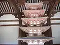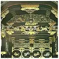 | Dachdeckung mit Hongawarabuki Schindeln (屋根瓦葺 (本瓦葺), yanegawarabuki (hongawarabuki))[48][49] | Kombination aus konkaven Dachziegeln (平瓦, hiragawara) mit zylindrischen Ziegeln (丸瓦, marugawara) an den Stoßkanten. | Kiyokazu Yamamoto (* 1932) und Mitsuo Teramoto (* 1946)[Anm. 6] | 1994 |