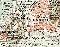 - ↑ a b c K. Mühlhahn: Qingdao (Tsingtau) – Ein Zentrum deutscher Kultur in China? In: H.-M. Hinz, C. Lind (Hrsg.): Tsingtau – Ein Kapitel deutscher Kolonialgeschichte in China 1897–1914. DHM, Berlin 1998, ISBN 3-86102-100-5, S. 125.