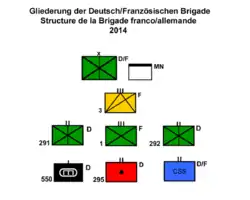 Alle Truppenteile waren bis 2009 in Deutschland stationiert; seit 2010 haben die Soldaten des französischen 3. Husarenregiments und des deutschen Jägerbataillons 291 ihre militärische Heimat im französischen Nordosten; ebenso wie das, nach der Auflösung des in Donaueschingen beheimateten 110e régiment d’infanterie am 24. Juni 2014, neu unterstellte 1er régiment d’infanterie.