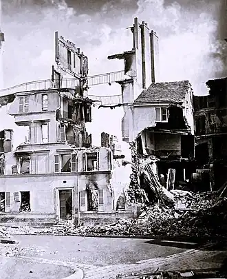 Hausruine in Saint-Cloud, Fotoaufnahme zur Dokumentation der Kriegsschäden, um 1871 im Pariser Atelier von Adolphe Braun entwickelt