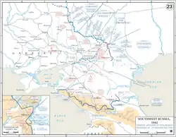 Italien erklärte der Sowjetunion am 23. Juni den Krieg, obwohl es in den Monaten zuvor noch diplomatische Annäherungsversuche zwischen den beiden Ländern gegeben hatte. Die Verhandlungen waren jedoch durch deutsche Interventionen wiederholt gestört worden, und der deutsche Angriff auf die Sowjetunion besiegelte ihr Ende.[37] Benito Mussolini entsandte das Corpo di spedizione italiano in Russia mit 62.000 Mann, 220 Geschützen und 83 Flugzeugen.[38] Dieses traf gegen Ende Juli an der Front ein und wurde im Bereich der Heeresgruppe Süd eingesetzt.