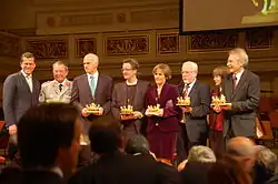 Strukturelle Verwaltungsdefizite in Griechenland führten zu einer Misswirtschaft, die in Folge der Weltfinanzkrise 2007–2008 zu einer erneuten, heute noch andauernde Staatsschuldenkrise führte. Fehlende Kontrollmechanismen begünstigten die privatwirtschaftliche Korruption aus Deutschland, die zu unnötigen oder überteuerten Auftragsvergaben des griechischen Staates an deutsche Unternehmen führten. Nach seinem Regierungsantritt Ende 2009 wurde Giorgos A. Papandreou, der nach intensiven Verhandlungen und trotz starker Bedenken den (undemokratischen)[55] EU-Weg aus der Krise akzeptierte, in der deutschen Presse zunächst wohlwollend behandelt. So wurde er für die Unterzeichnung des Memorandums 2010 von der Werkstatt Deutschland mit deren Quadrigapreis in der Kategorie Kraft der Wahrhaftigkeit ausgezeichnet; gemeinsam mit Wolfgang Schäuble, der sich allerdings bei der Verleihung vertreten ließ. Kurze Zeit nach der Preisverleihung wurde Papandreou eröffnet, dass die EU-Partner ein zweites, viel größeres Memorandum planten, weshalb er umgehend ein Referendum ankündigte. Der anschließende anti-griechische Sturm vor allem in deutschen Medien und deutscher Politik zwang ihn jedoch zum Rücktritt. Die Werkstatt Deutschland, vertreten durch deutsche Persönlichkeiten aus Medien und Politik, ist eine Gründung namhafter meist deutscher Großkonzerne. Nach 2010 wurde der Quadrigapreis nicht mehr vergeben.