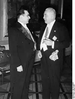 Nach dem Ende des Ersten Weltkriegs wurde Friedrich von Keller 1921 zum ersten Gesandten Deutschlands im Königreich der Serben, Kroaten und Slowenen (1929 in Königreich Jugoslawien umbenannt) ernannt. Die diplomatischen und wirtschaftlichen Beziehungen intensivierten sich in den 1930er Jahren deutlich, als sich der jugoslawische Ministerpräsident Milan Stojadinović ab 1935 an die in Deutschland und Italien regierenden faschistischen Bewegungen anlehnte. Da Deutschland sowohl Nahrungsmittel als auch Rohstoffe wie Eisen, Bauxit, Kupfer und Mangan benötigte, erlebte Jugoslawien ab 1935 einen wirtschaftlichen Aufschwung und exportierte in großem Umfang Mineralien und landwirtschaftliche Produkte nach Deutschland, was das Land in den wirtschaftlichen Einflussbereich Deutschlands brachte.[1] Bis 1939 wurde knapp die Hälfte des jugoslawischen Handels mit Deutschland abgewickelt, wodurch das Reich zum größten Handelspartner wurde. Im Januar 1938 besuchte Stojadinović Deutschland, um Adolf Hitler zu treffen, und versicherte ihm, dass er ein persönlicher Bewunderer des Führers sei. Jugoslawien verkündete den Anschluss Österreichs anzuerkennen und Hitler versicherte Jugoslawien, Deutschland würde das Land nicht mehr durch die alte „Wiener Brille“ betrachten.[2] Durch eine Neutralität wollte Jugoslawien vermeiden, bei einem weiteren großen Krieg zwischen die Fronten zu geraten. Dies wurde allerdings durch die irredentistischen Ansprüche von Hitlers verbündetem Benito Mussolini in Jugoslawien verkompliziert.