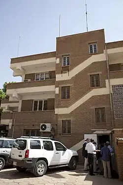 Es handelt sich um eine Zwischenunterbringung. Im September 2012 war das eigentliche Botschaftsgebäude von aufgebrachten Islamisten gestürmt und in Brand gesetzt worden.[2][3] Es entsteht ein Neubau, in dem die Botschaft Frankreichs mit untergebracht ist.[4][5] Die Grundsanierung der Residenz des Botschafters, direkt am Blauen Nil gelegen,[6] wurde für Anfang der 2020er Jahre vergeben.[7]