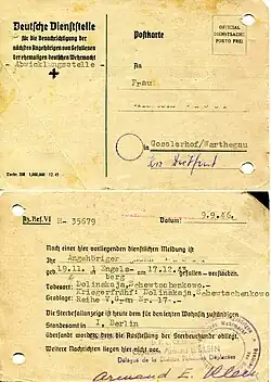| Deutsche Dienststelle für die Benachrichtigung der nächsten Angehörigen von Gefallenen der ehemaligen deutschen Wehrmacht (WASt) | |