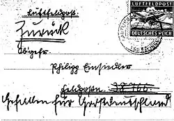 - ↑ a b Feldpostmarken / Zulassungsmarken für Feldpost im 2. Weltkrieg. In: Michel-Katalog Deutschland-Spezial 1999. S. 828.
