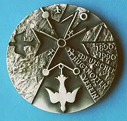 Medaille (Rückseite) zum 100-jährigen Jubiläum Des Deutschen Hugenotten-Vereins 1990; Entwurf von Viktor Huster