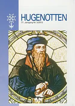 • Hugenotten. Mitgliederzeitschrift, die vierteljährlich erscheint. Die Zeitschrift wurde 1929 als Der Deutsche Hugenott begründet und 1998 in Hugenotten umbenannt.