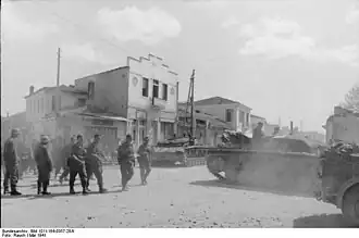 Bruno Bieler) die in Richtung Štip vorstieß, bei Carevo Selo gestoppt wurde. Nach mehrstündigen Kämpfen wurden die feindlichen Widerstandsnester jedoch zerstört. Am Abend des Tages hatten die Speerspitzen der beiden Divisionen das Gebiet östlich von Kumanovo und Kocane erreicht. In der Nacht schlossen Teile der 9. Panzerdivision auf, und am nächsten Tag überquerten die verbliebenen Panzer die grenznahen Gebirgspässe. Am Nachmittag des 7. April erreichte die Vorhut der Panzerdivision Skopje. Am selben Tag erreichte die Kampfgruppe der 73. Division Veles, während der Hauptteil der Division in einiger Entfernung folgte. Das verstärkte 1. motorisierte SS-Infanterieregiment, das zurückgehalten worden war, rückte entlang der Route der 9. Panzerdivision vor, um sich am Angriff auf die Verteidigungsstellungen des Vardar zu beteiligen.